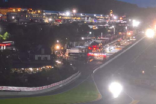 As with other 24-hour events most qualifying takes place at night with Rookie drivers having to complete their statutory 10 laps, so even with our arrival at the circuit at a relatively late hour, we were still able to enjoy 4 hours of cars on the track whilst having a good wander round the paddock and grandstand areas to get our bearings, find the underpasses and following each car’s progress from the multitude of big screens dotted around the circuit. Making our way back towards the campsite about 23:30 we watched the last throes of the session high-up on the ridge above Malmedy corner where you can also look over the entry into Rivage.